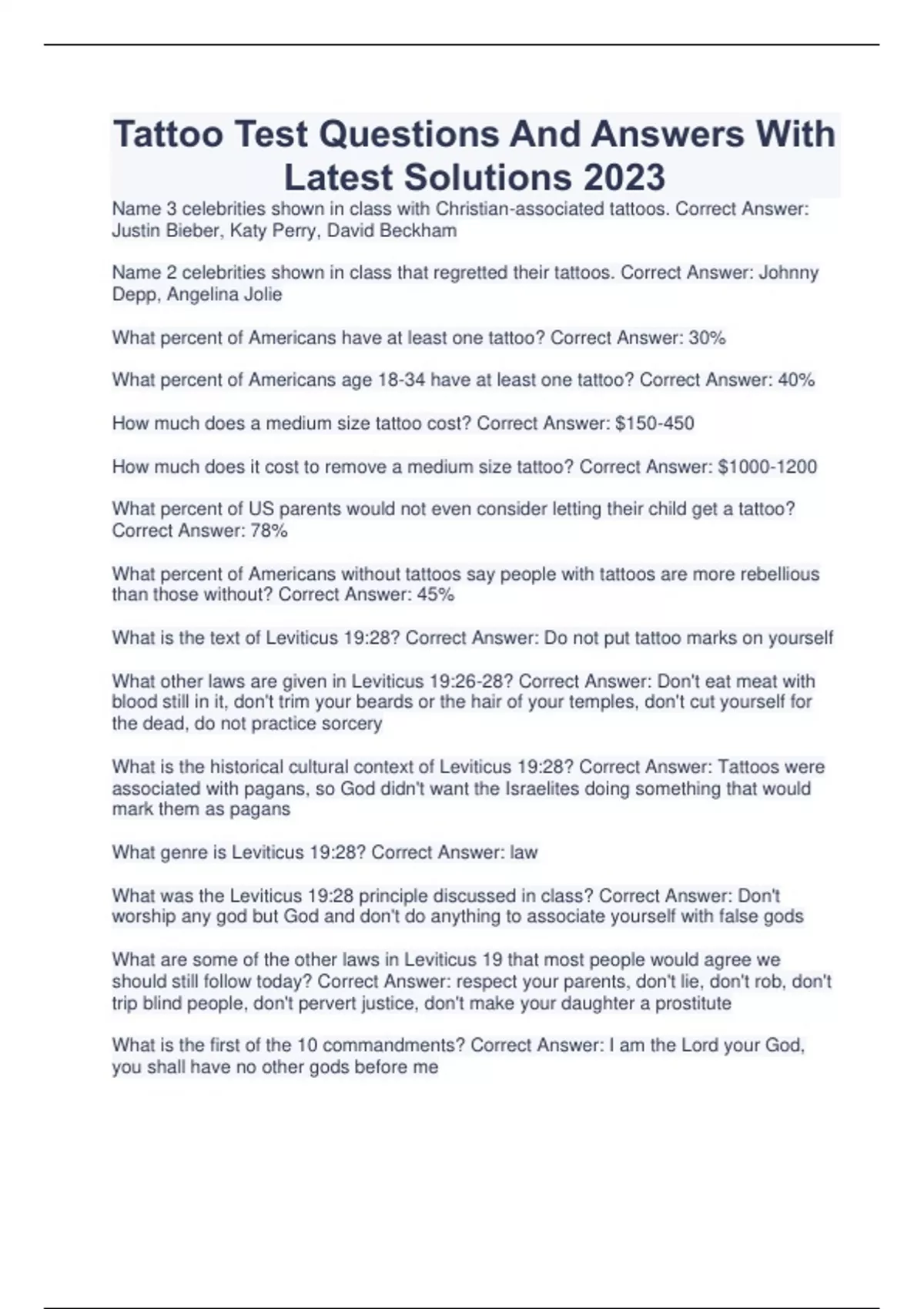 Tattoo Test Questions And Answers With Latest Solutions 2023