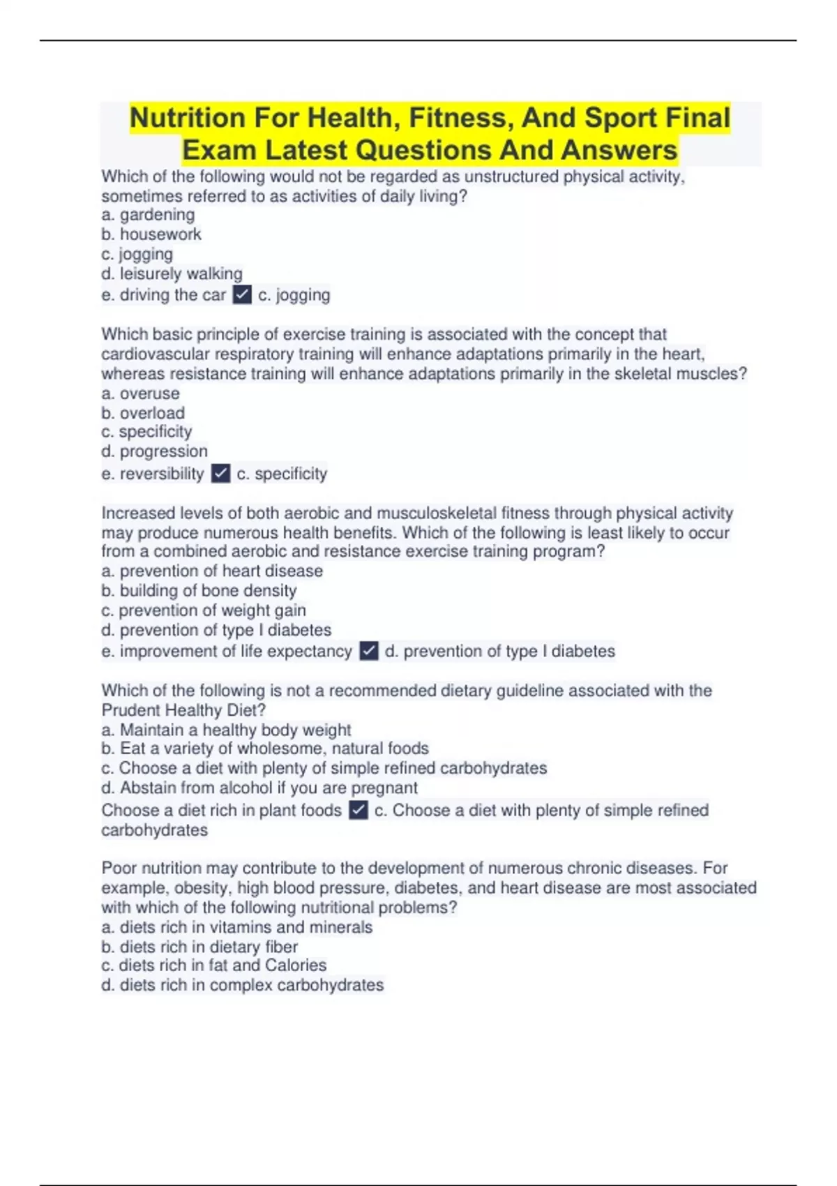 Nutrition For Health, Fitness, And Sport Final Exam Latest Questions And Answers Nutrition For Health, Fitness, And Sport Final Exam Latest Questions And Answers
