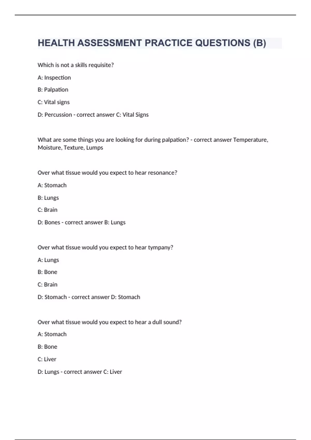 HEALTH ASSESSMENT PRACTICE QUESTIONS (B)