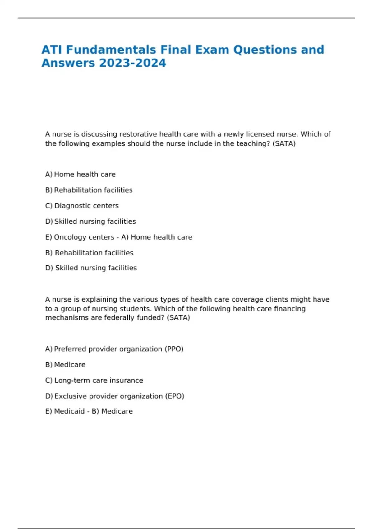 ATI Fundamentals Final Exam Questions and Answers