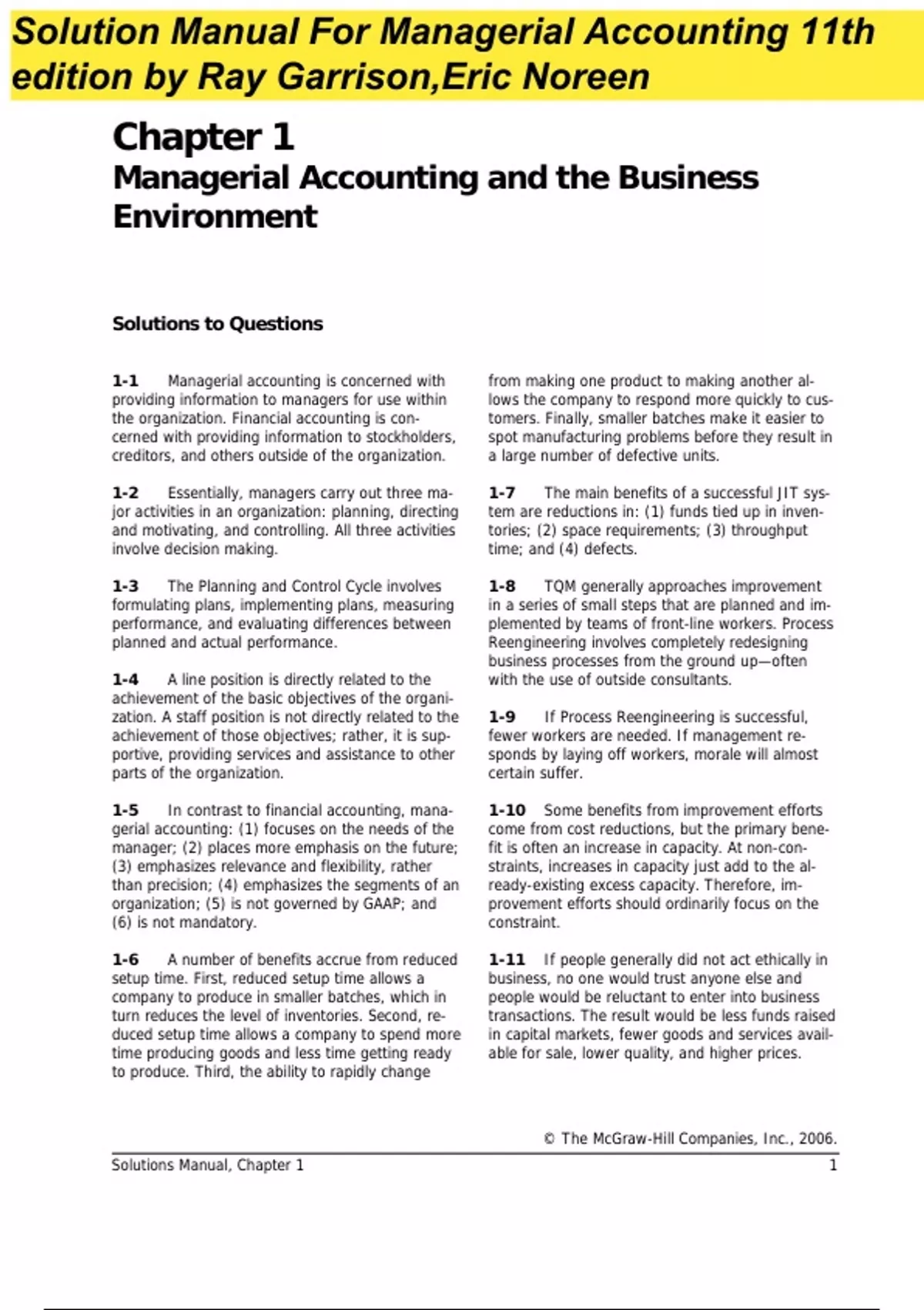 Solution Manual For Managerial Accounting 11th edition by Ray Garrison,Eric Noreen