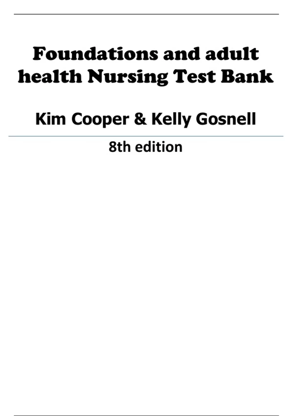 TEST BANK FOR FOUNDATIONS AND ADULT HEALTH NURSING 8TH EDITION BY KIM COOPER