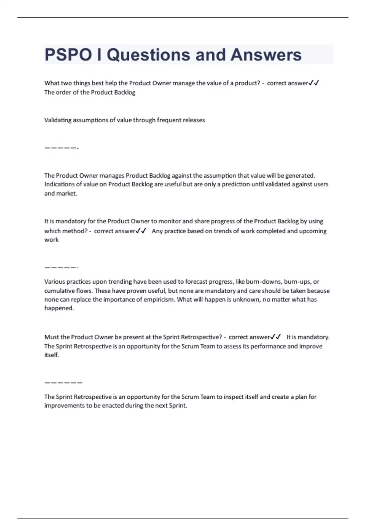 PSPO I Questions and Answers