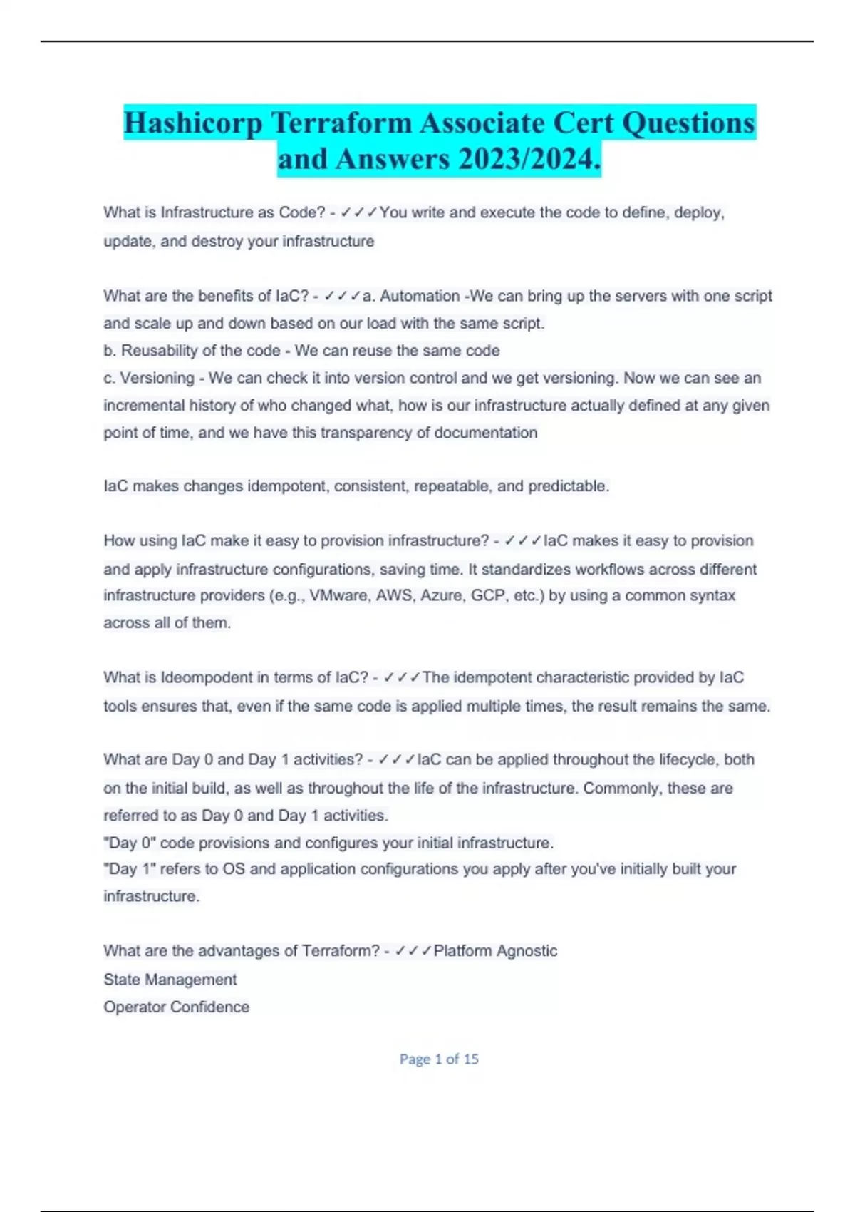 Hashicorp Terraform Associate Cert Questions and Answers 2023/2024. Hashicorp Terraform Associate Cert Questions and Answers 2023/2024. Hashicorp Terraform Associate Cert Questions and Answers 2023/2024.