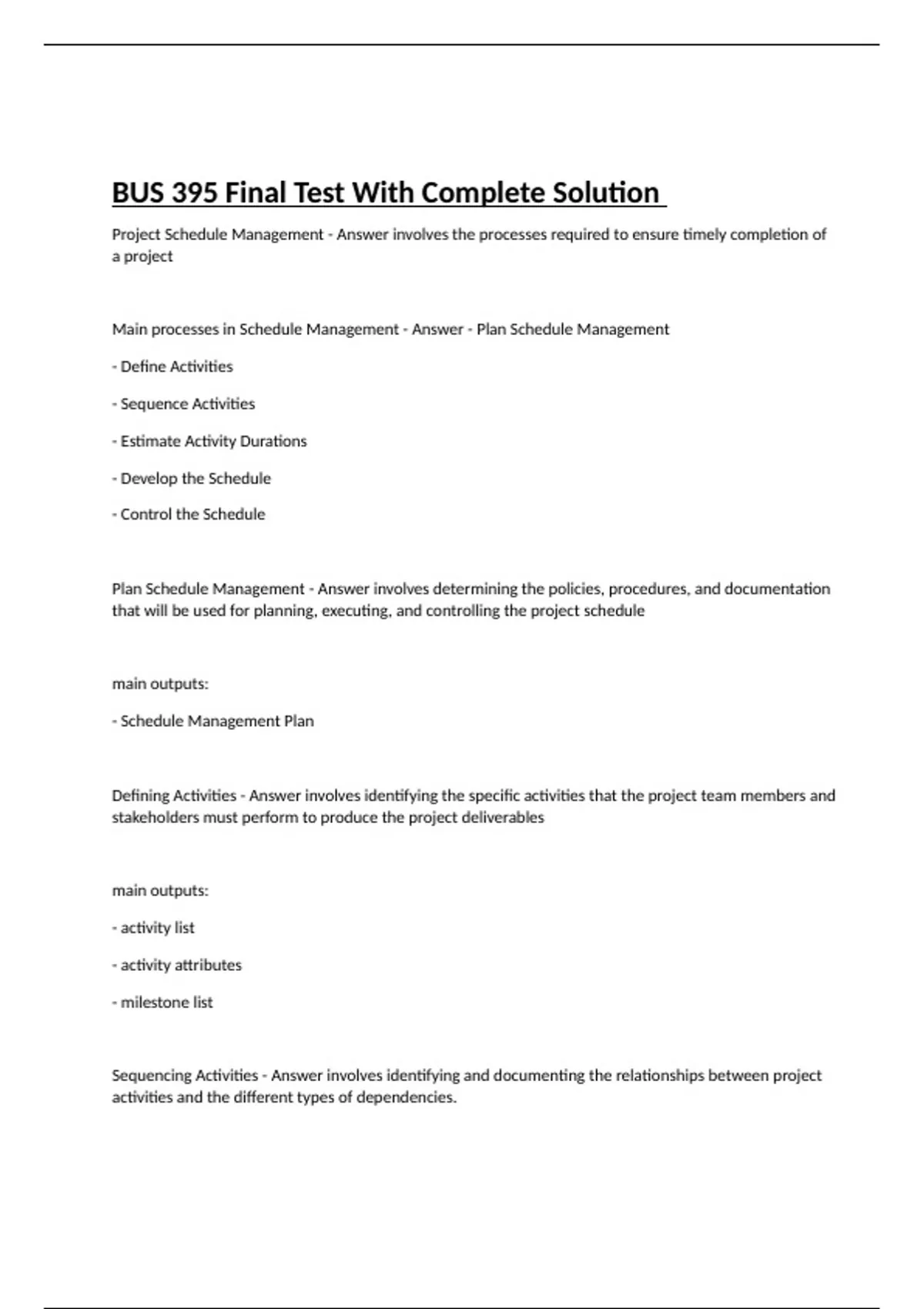 bus 395 final test with complete solution