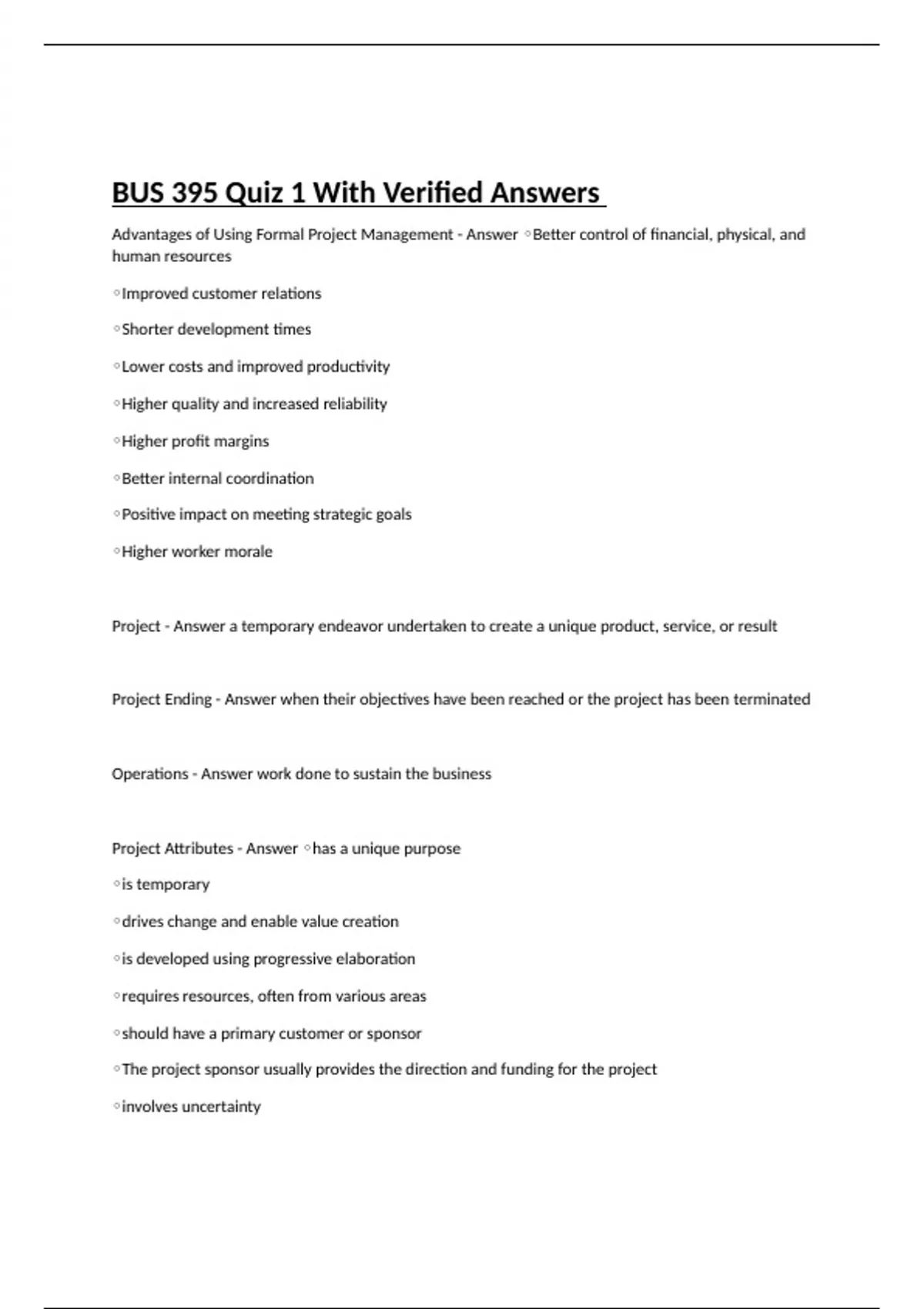 BUS 395 Quiz 1 With Verified Answers