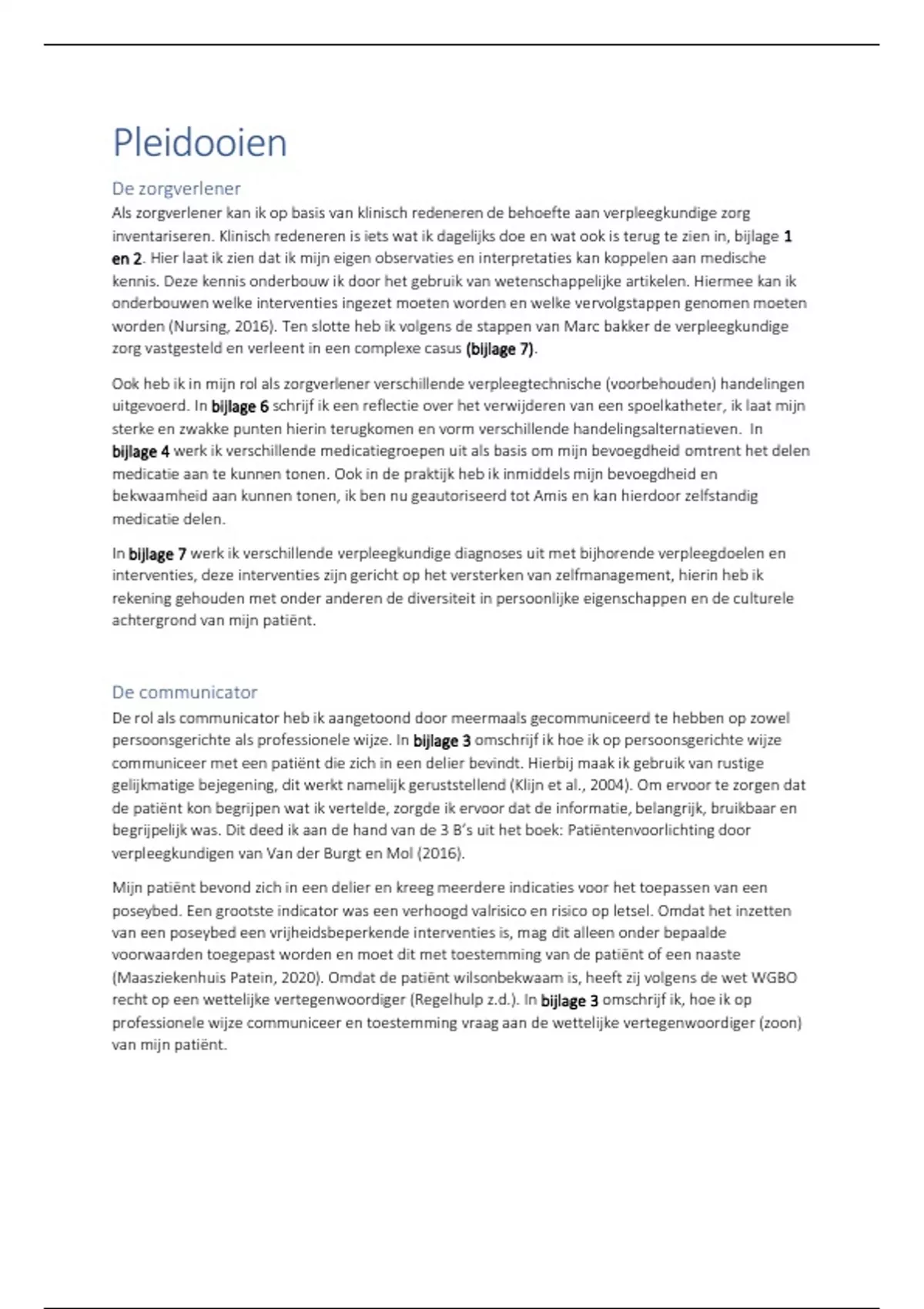 de samenwerking met de zorgvrager en andere zorgverleners. Dit heb ik gedaan door het schrijven