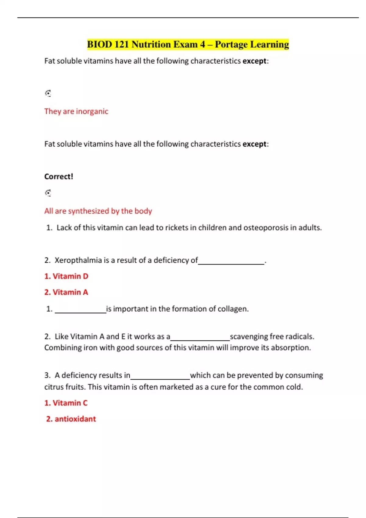 BIOD 121 Nutrition Exam 4 – Portage Learning