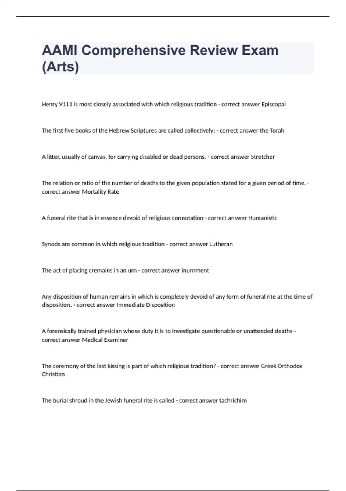 AAMI Comprehensive Review Exam (Arts) correctly answered 2023