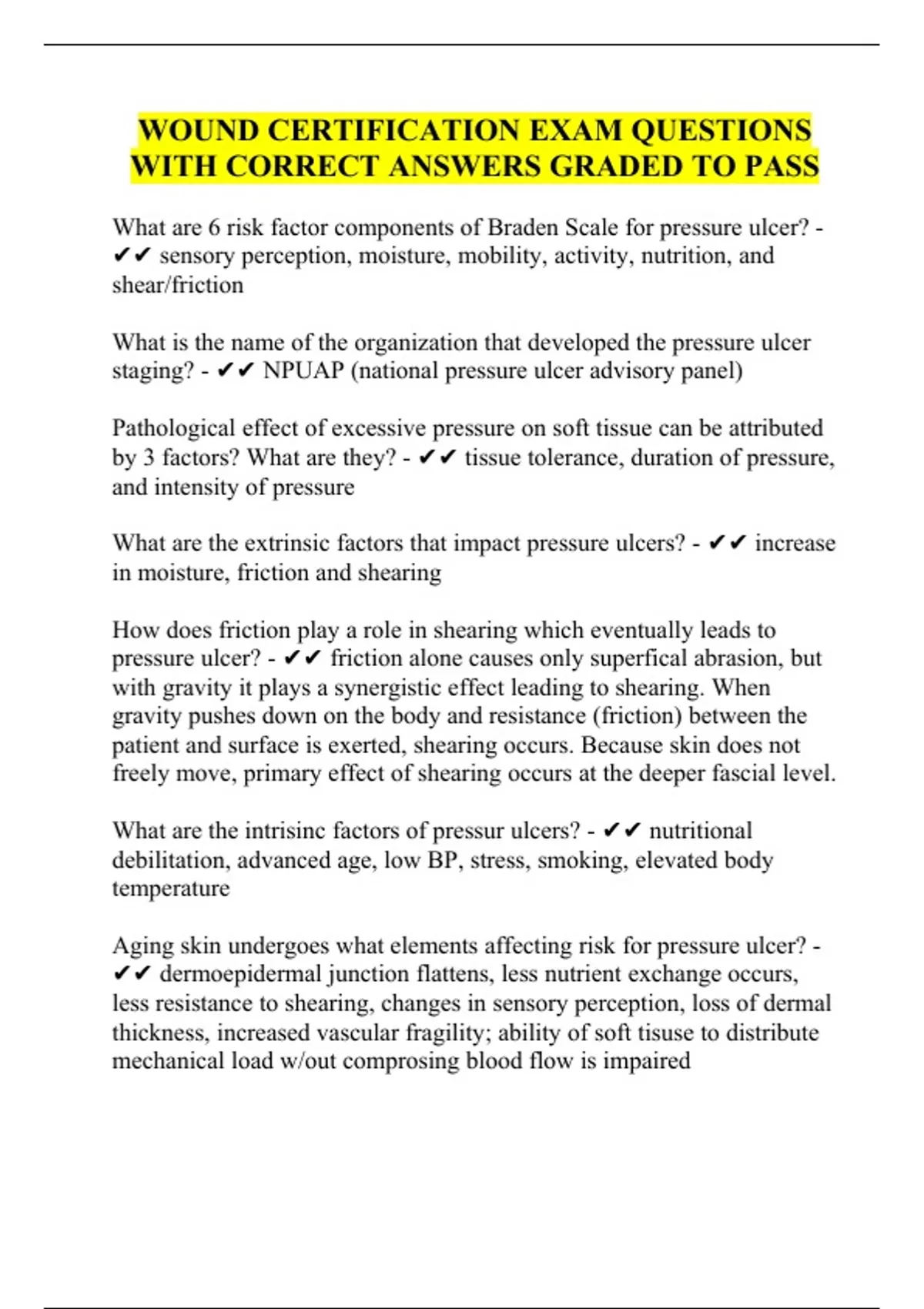 WITH CORRECT ANSWERS GRADED TO PASS