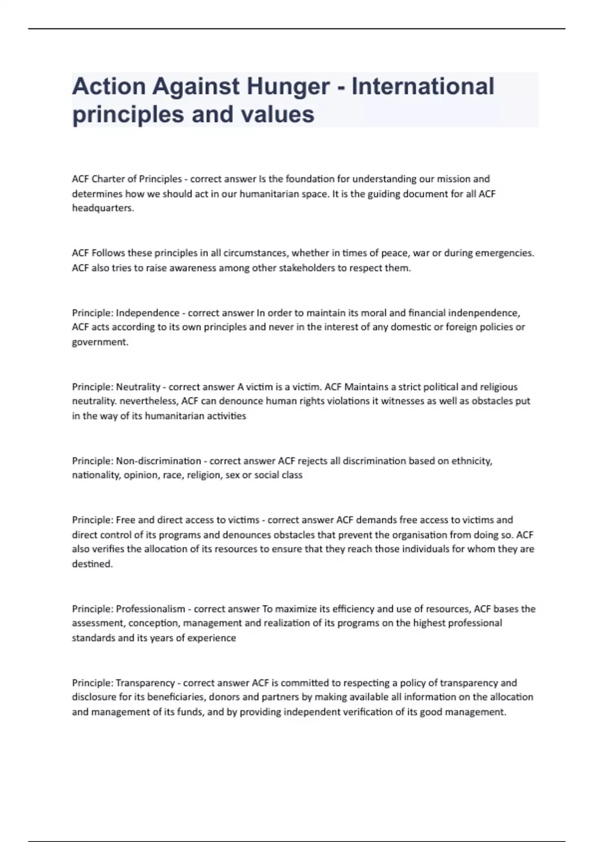 Action Against Hunger - International principles and values fully solved graded A+ 2023 passed