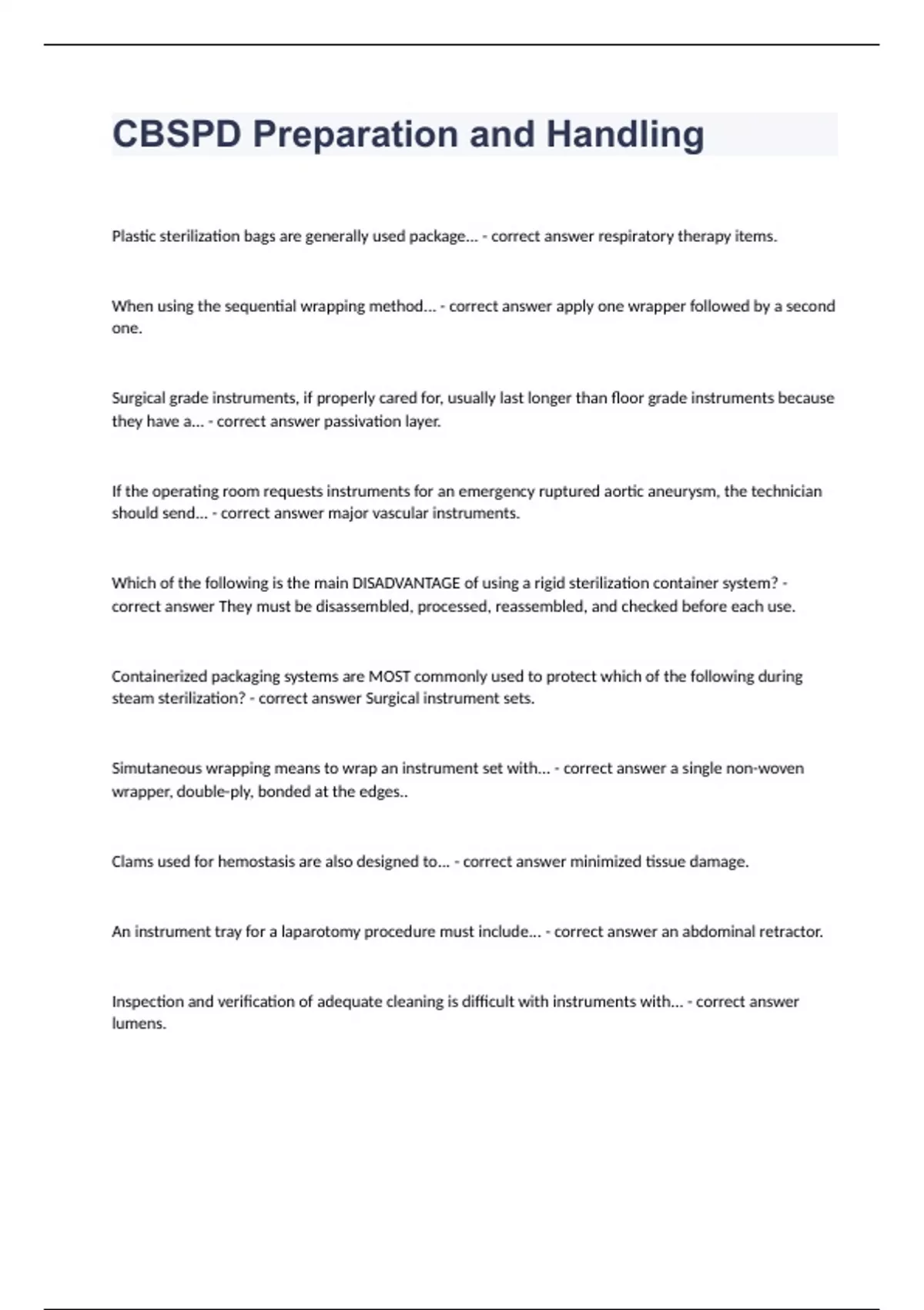 CBSPD Sterilization - Certification Exam Review 2023 passed
