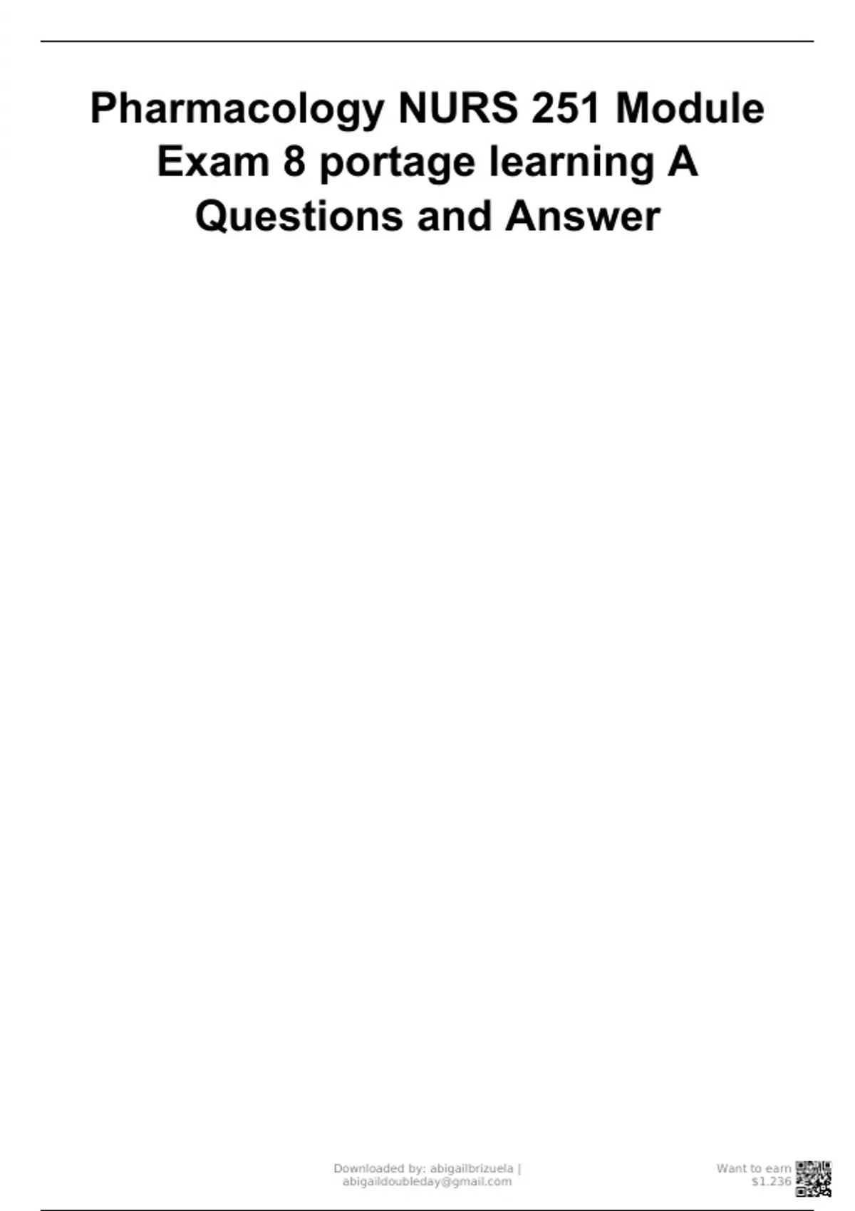 Pharmacology NURS 251 Module Exam 8 portage learning A Questions and Answer