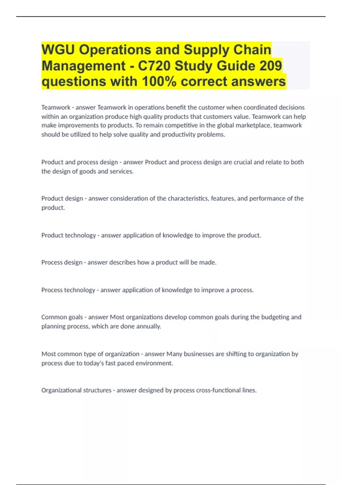 WGU Operations and Supply Chain Management - C720 Study Guide |209 questions with 100% correct answers