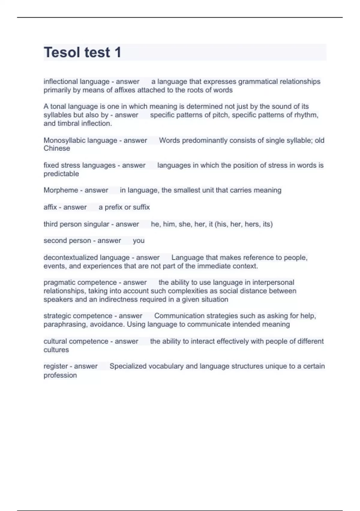 Tesol test 1 Questions and Answers fully solved 2023