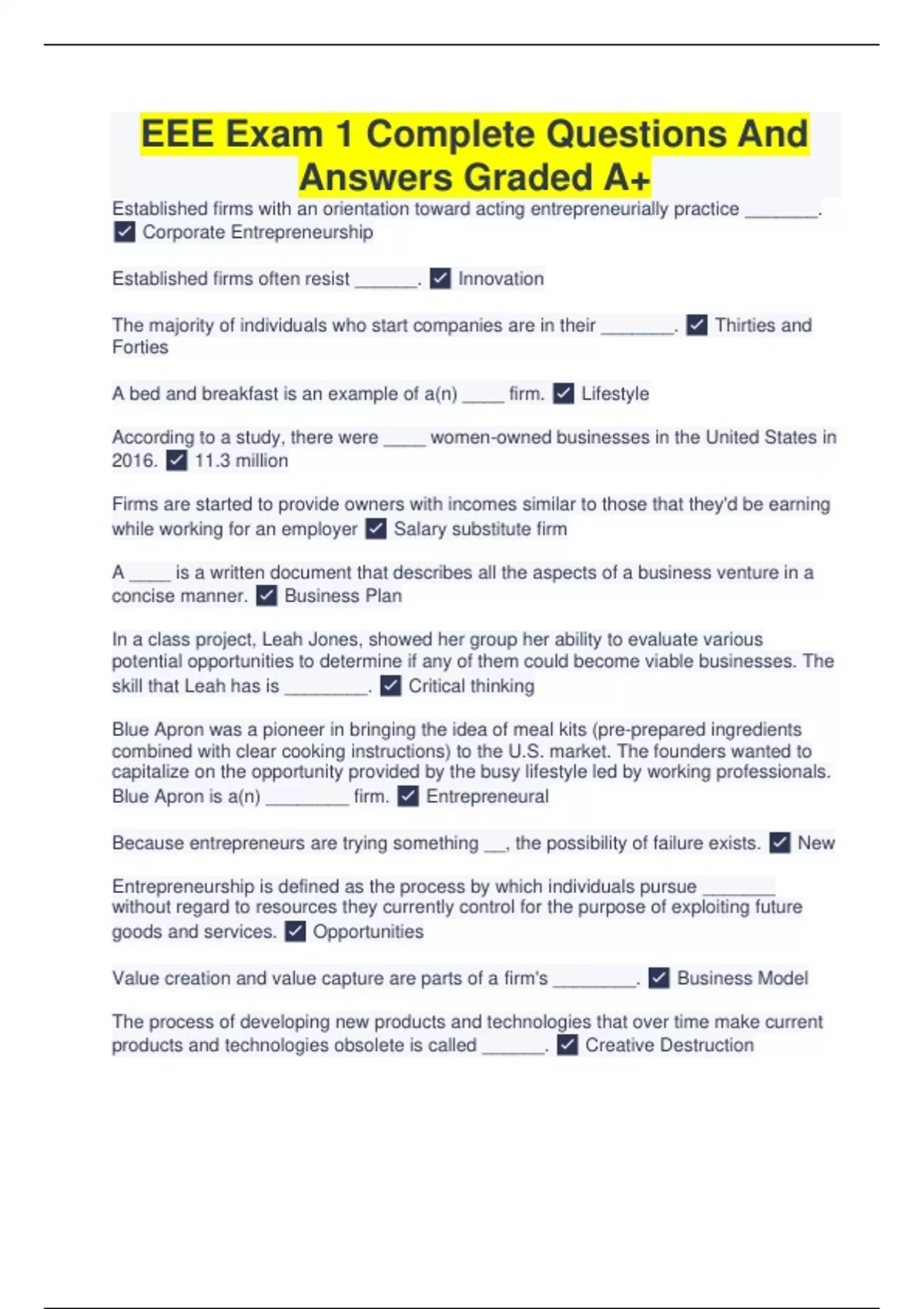 EEE Exam 1 Complete Questions And Answers Graded A+