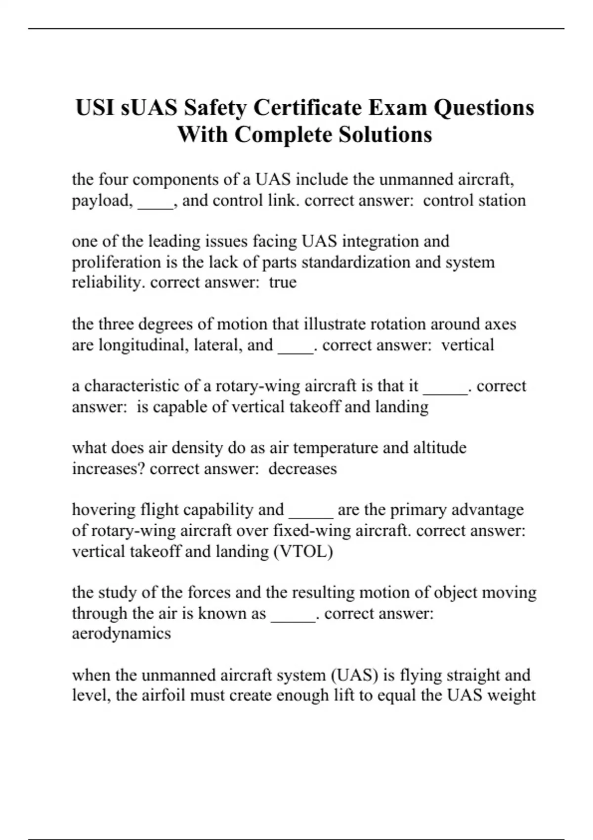 USI sUAS Safety Certificate Exam Questions With Complete Solutions
