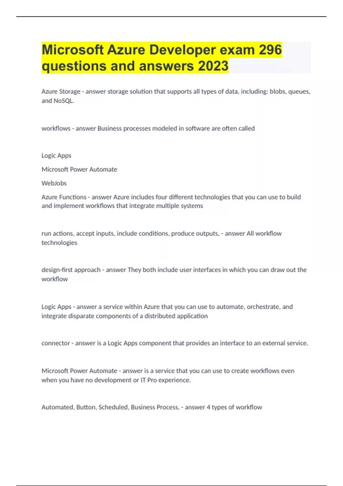 Microsoft Azure Developer exam| 296 questions and answers 2023