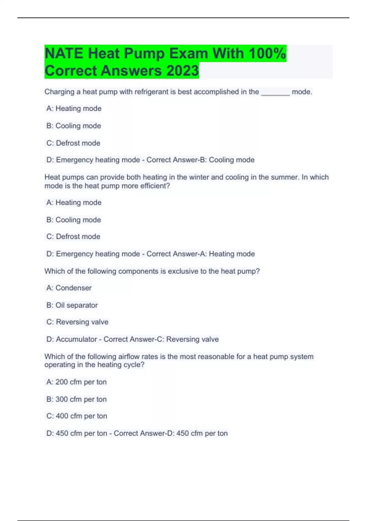NATE Heat Pump Exam With 100% Correct Answers 2023