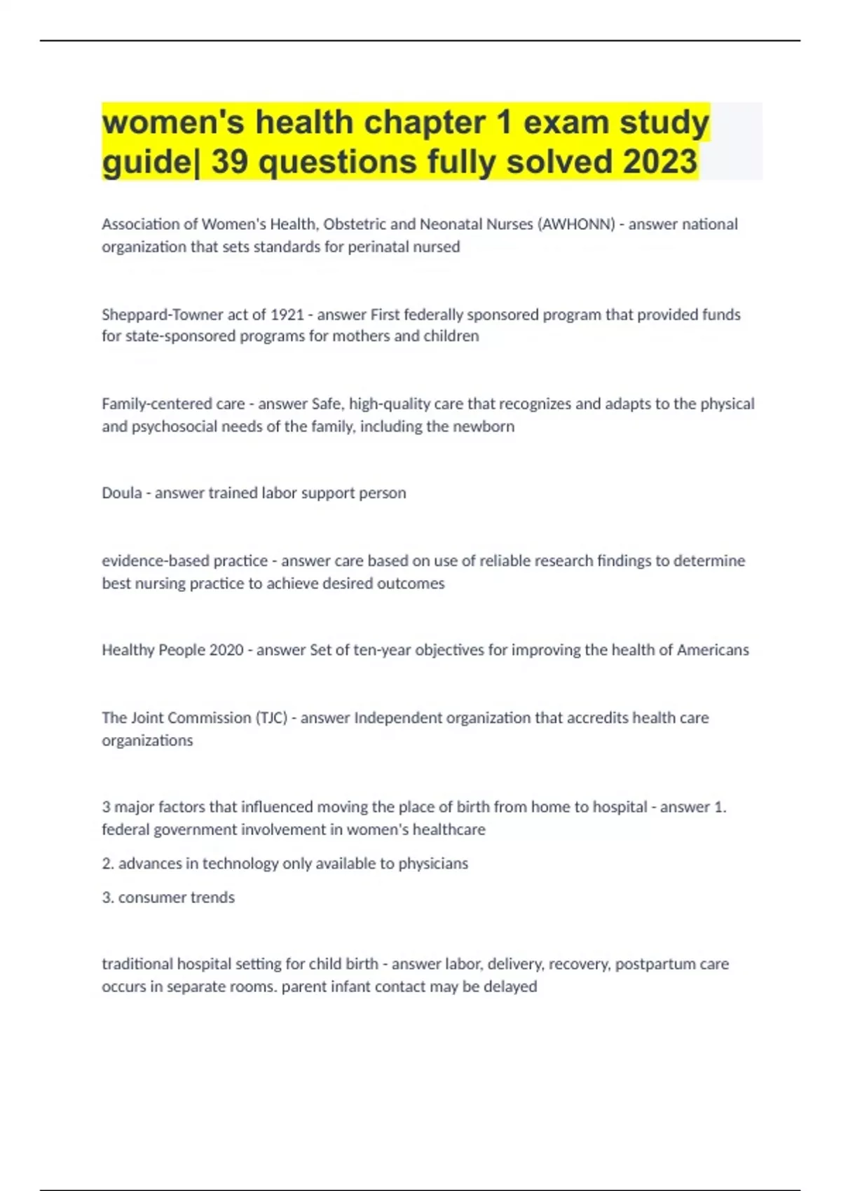 women's health chapter 1 exam study guide |39 questions fully solved 2023