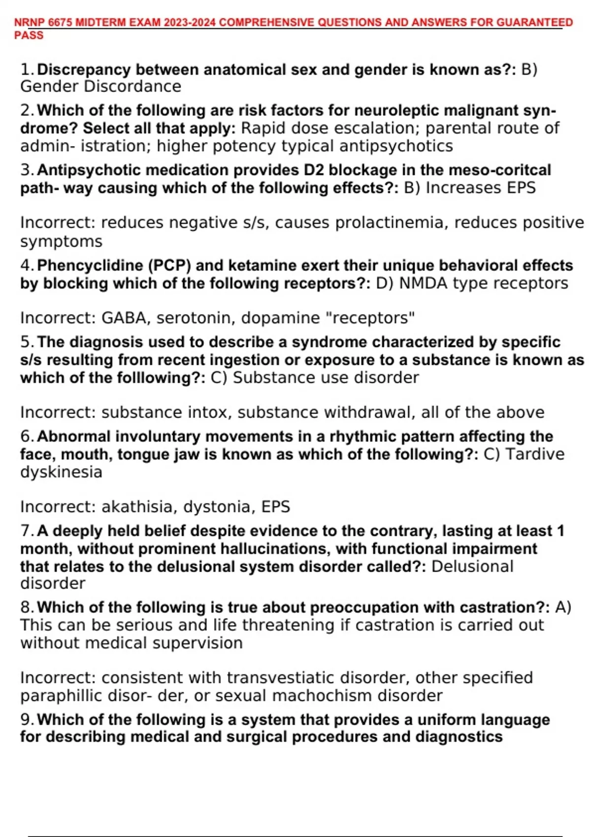 NRNP 6675 MIDTERM EXAM COMPREHENSIVE QUESTIONS AND ANSWERS FOR GUARANTEED PASS