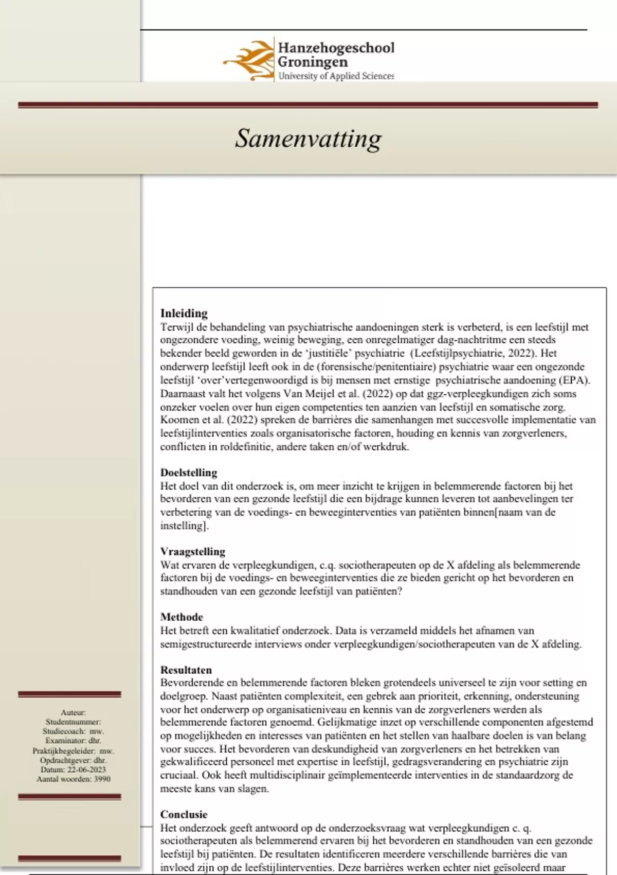sociotherapeuten als belemmerend ervaren bij het bevorderen en standhouden van een gezonde