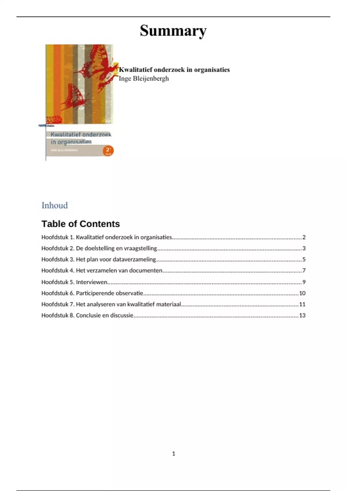 Samenvatting van het boek 'Kwalitatief onderzoek in organisaties' voor het vak Kwalitatieve Onderzoeksmethodologie van Radboud.