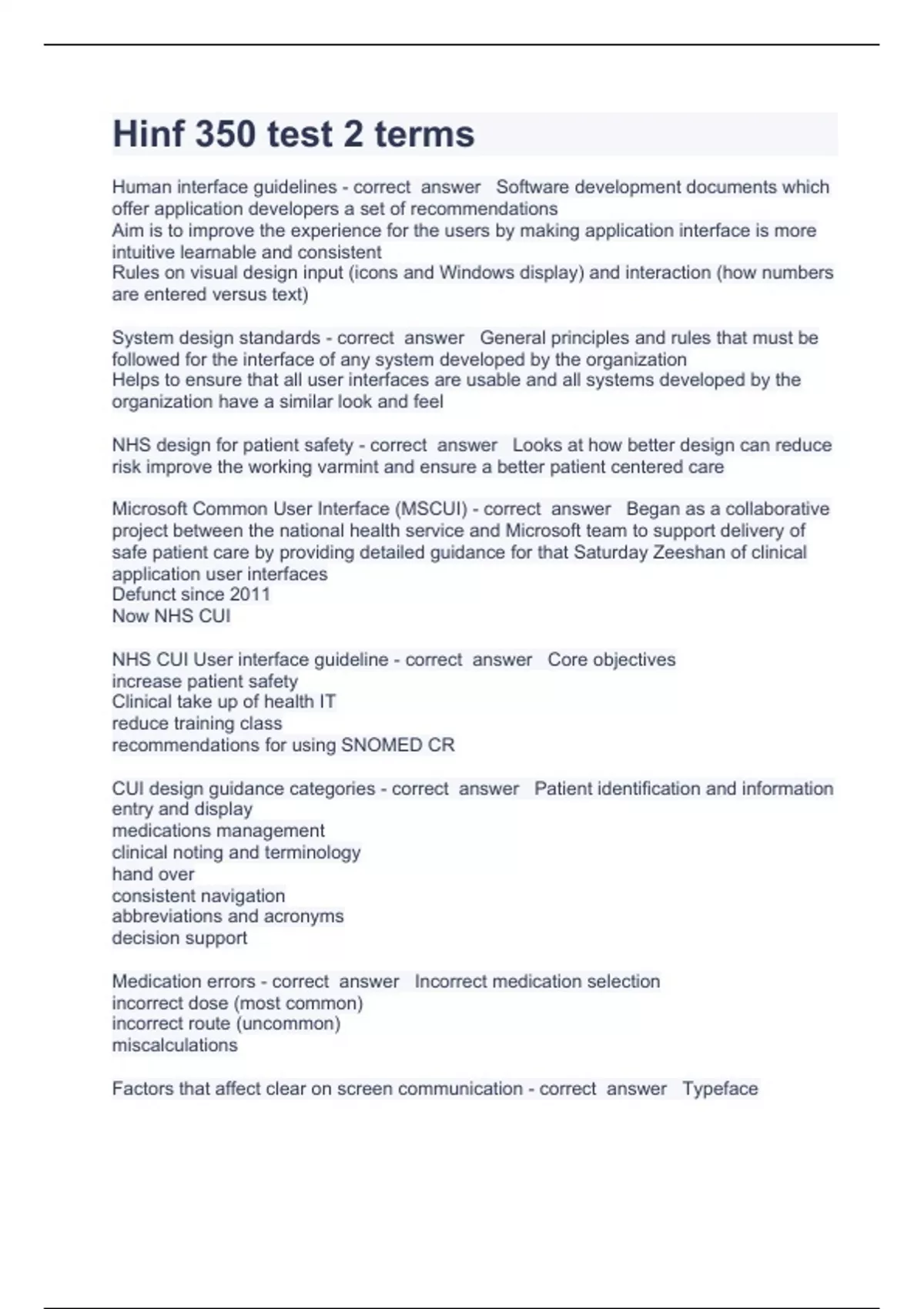 hinf 350 test 2 terms question and answers rated a