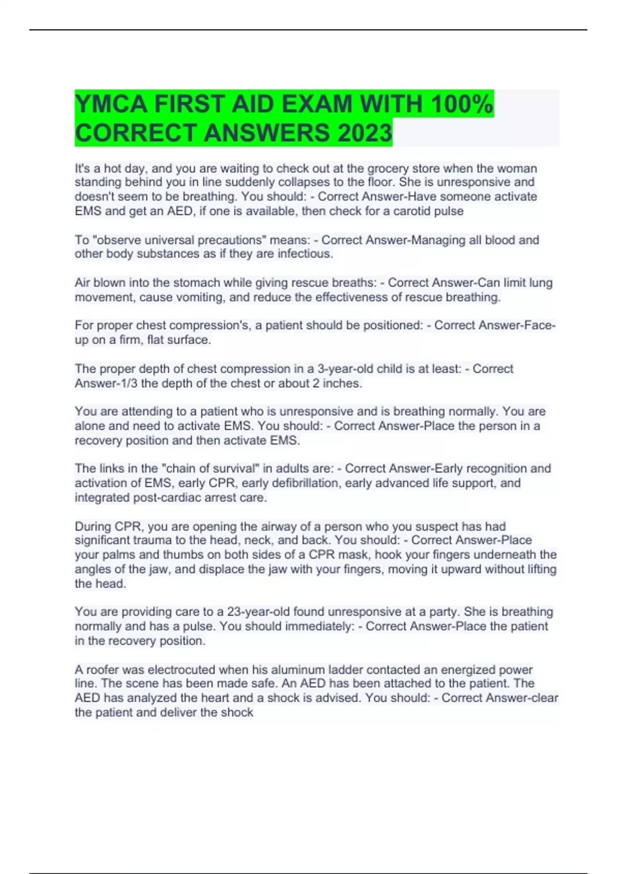 YMCA FIRST AID EXAM WITH 100% CORRECT ANSWERS 2023