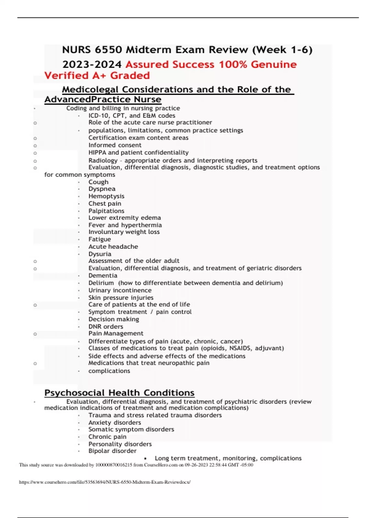 NURS 6550 Midterm Exam Review (Week 1-6) Assured Success 100% Genuine Verified A+ Graded