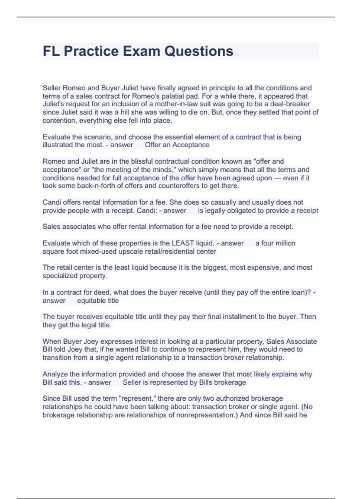 fl practice exam questions