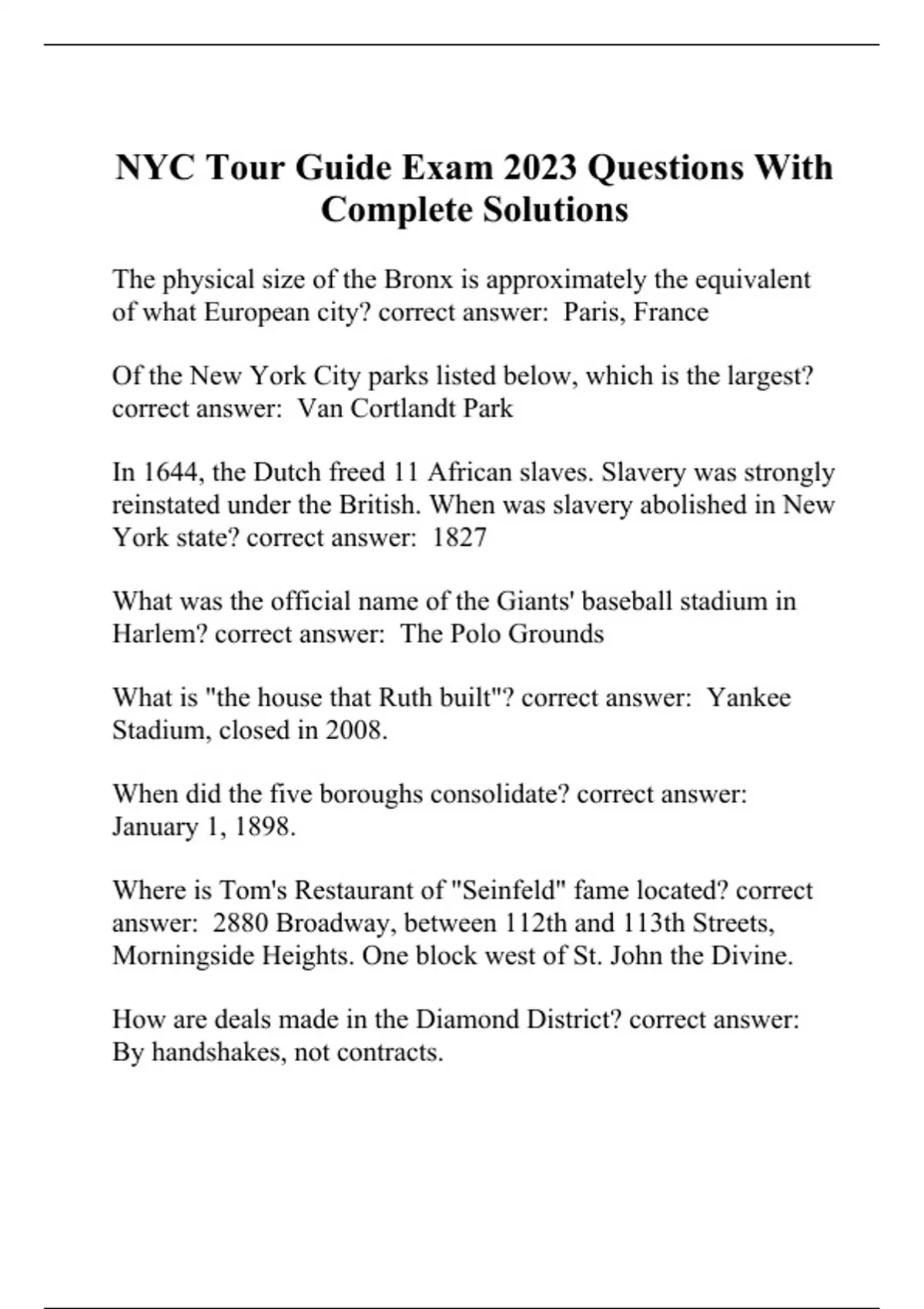 NYC Tour Guide Exam 2023 Questions With Complete Solutions