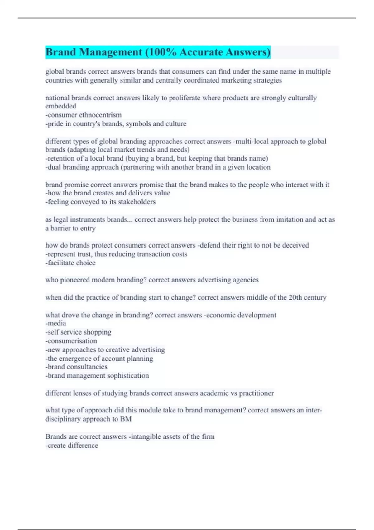 Brand Management (100% Accurate Answers)