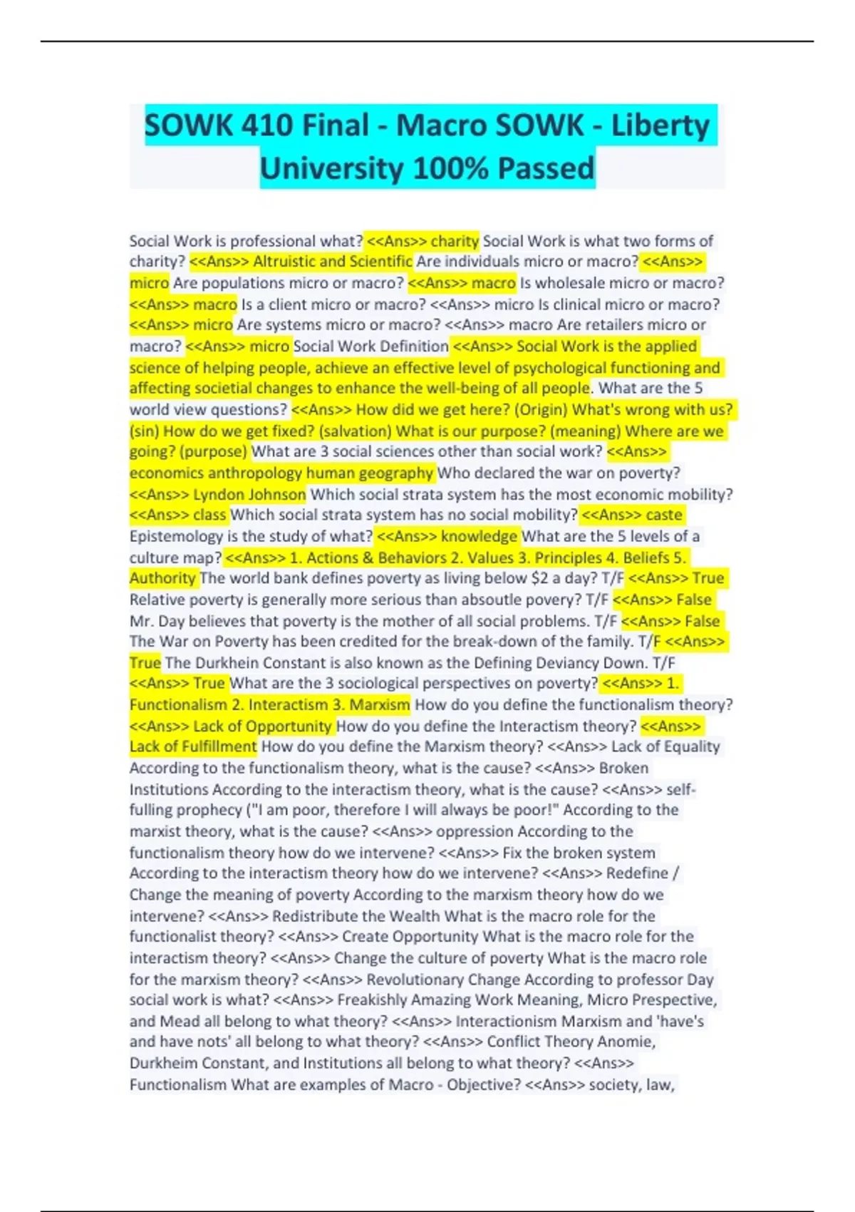 SOWK 410 Final - Macro SOWK - Liberty University 100% Passed