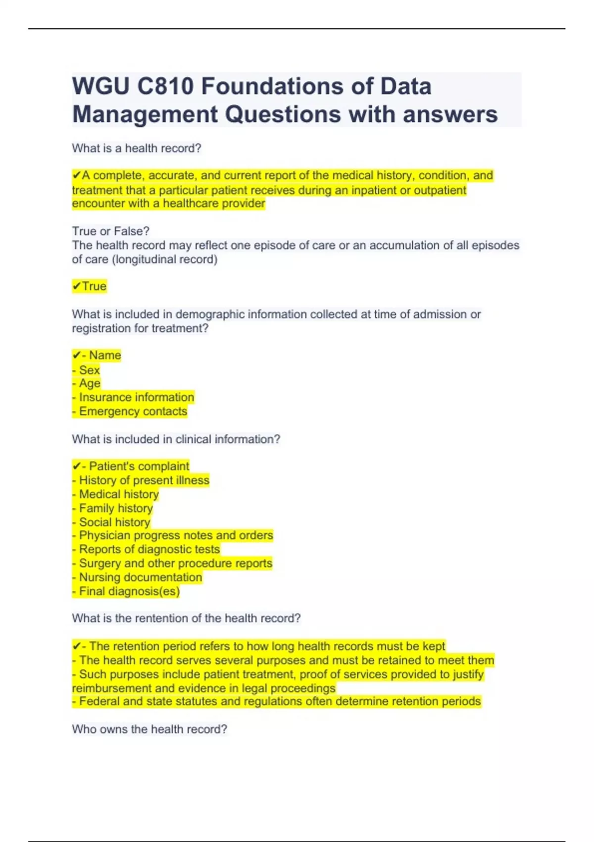 WGU C810 Foundations of Data Management Questions with answers