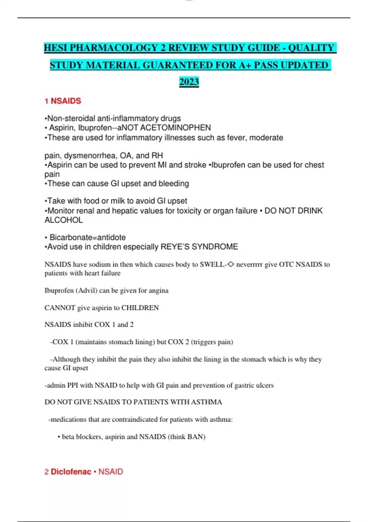 HESI PHARMACOLOGY 2 REVIEW STUDY GUIDE - QUALITY STUDY MATERIAL GUARANTEED FOR A+ PASS UPDATED 2023 This document will help you to further your knowledge and memorize drugs in pharmacology to help you pass your exams and also will be helpful in practice.