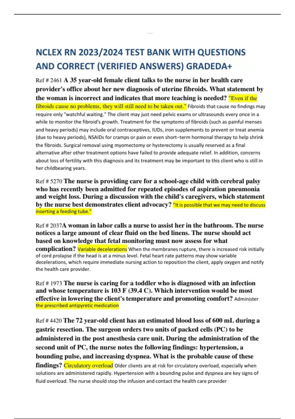 NCLEX RN 2023/2024 TEST BANK WITH QUESTIONS AND CORRECT (VERIFIED ANSWERS) GRADEDA+