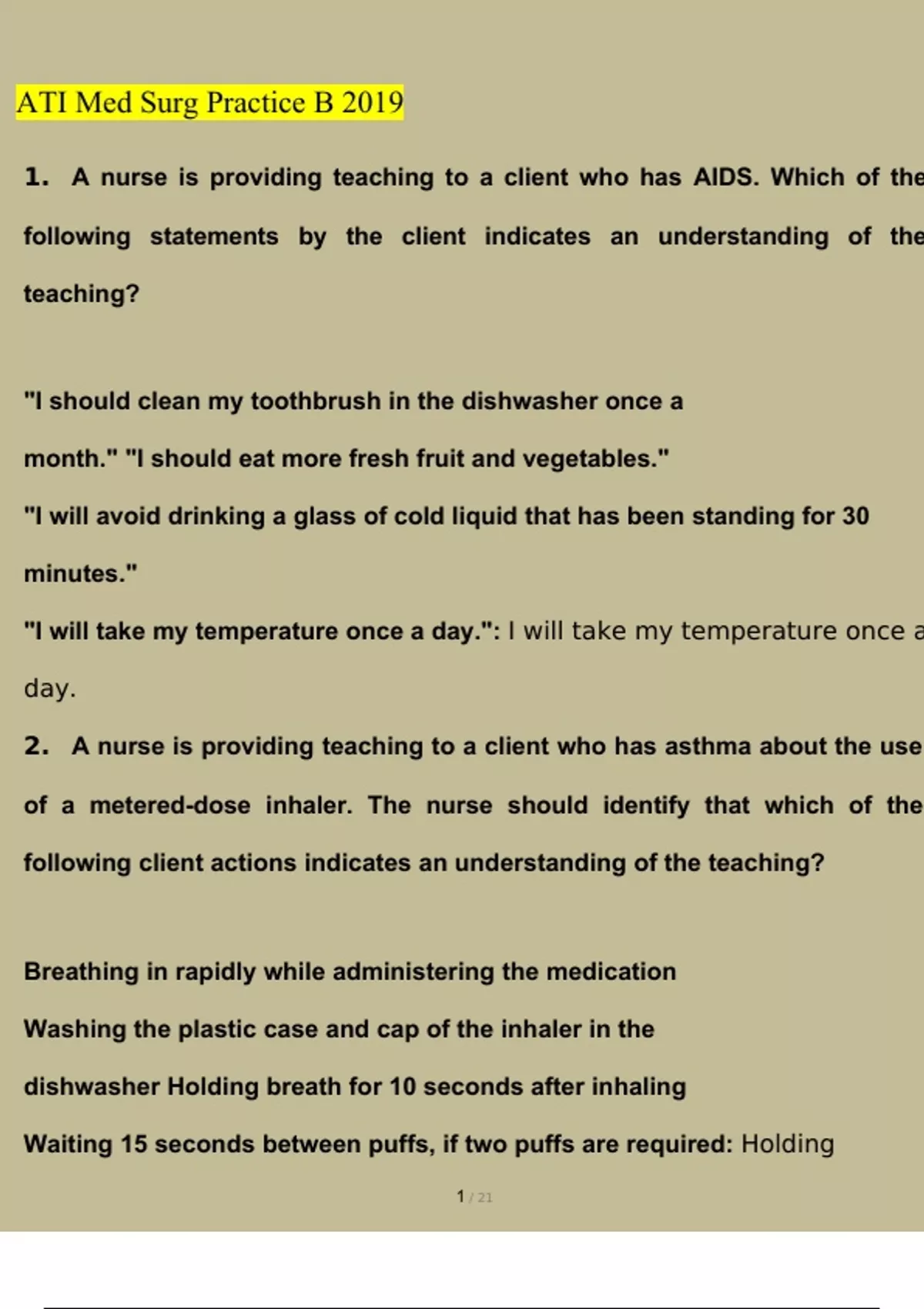 ATI RN Adult Med Surg Online Practice 2019 B Latest Questions and Answers (2023/2024) (Verified Answers)