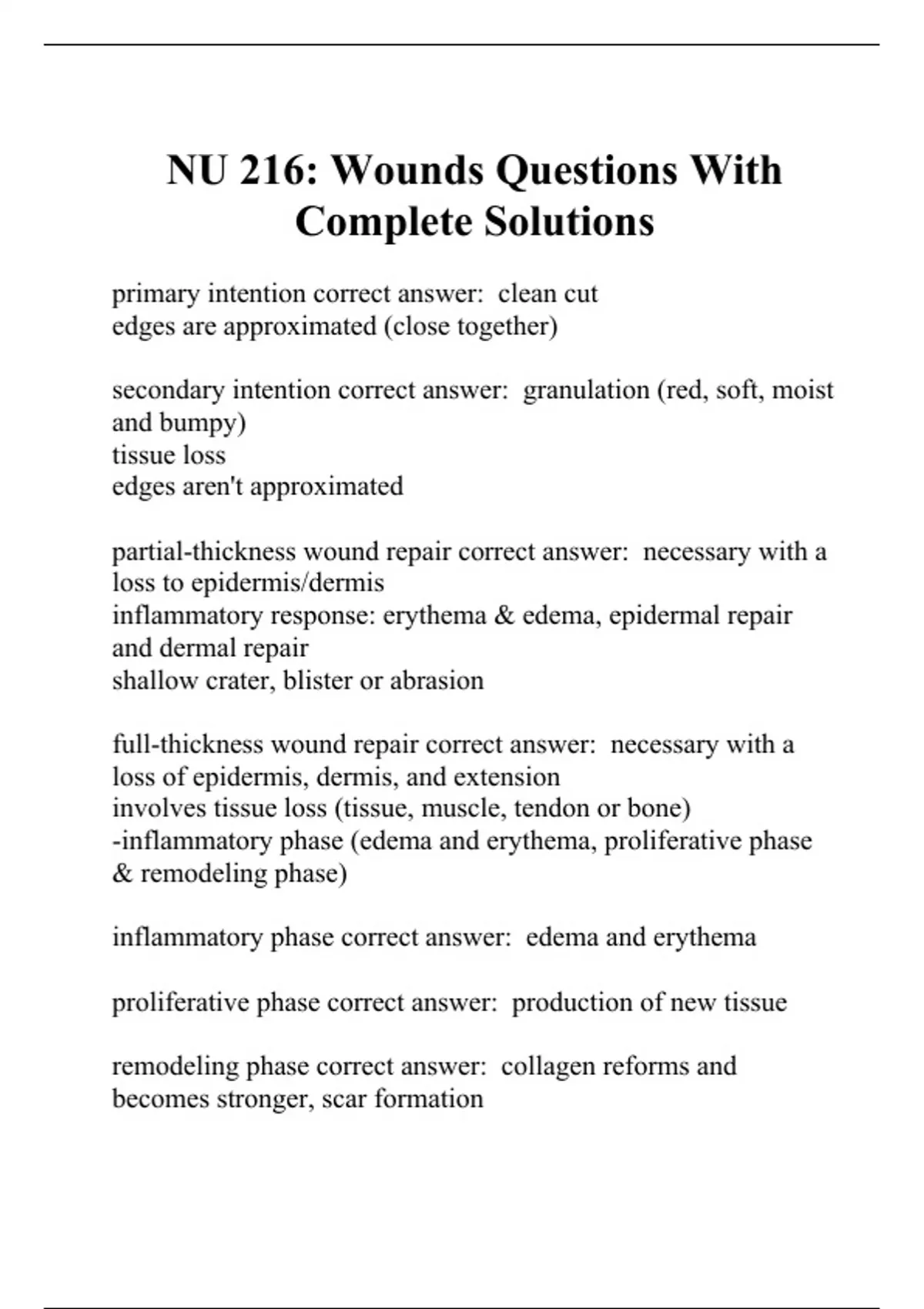 NU 216: Wounds Questions With Complete Solutions