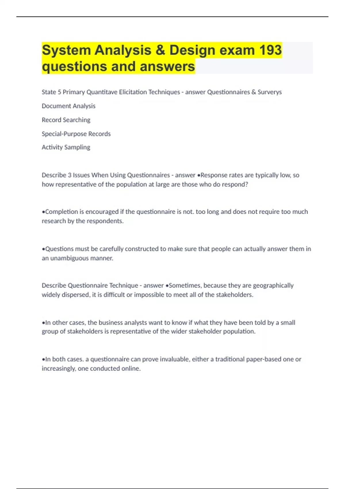 System Analysis & Design exam |193 questions and answers