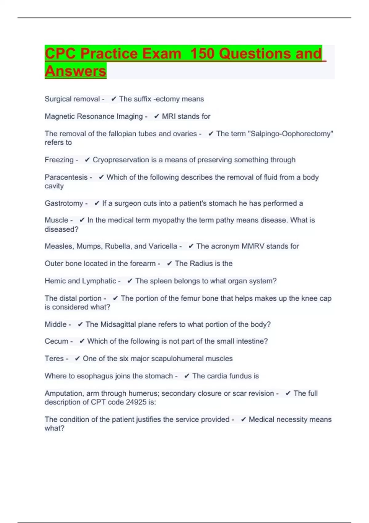 CPC Practice Exam 150 Questions and Answers.