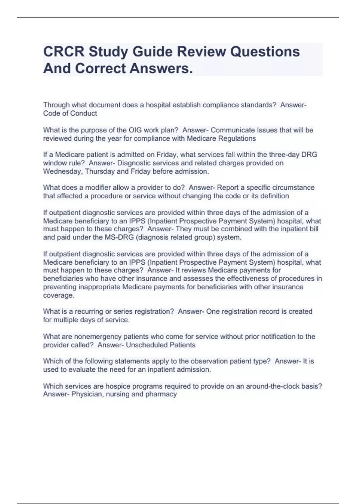 CRCR Study Guide Review Questions And Correct Answers.