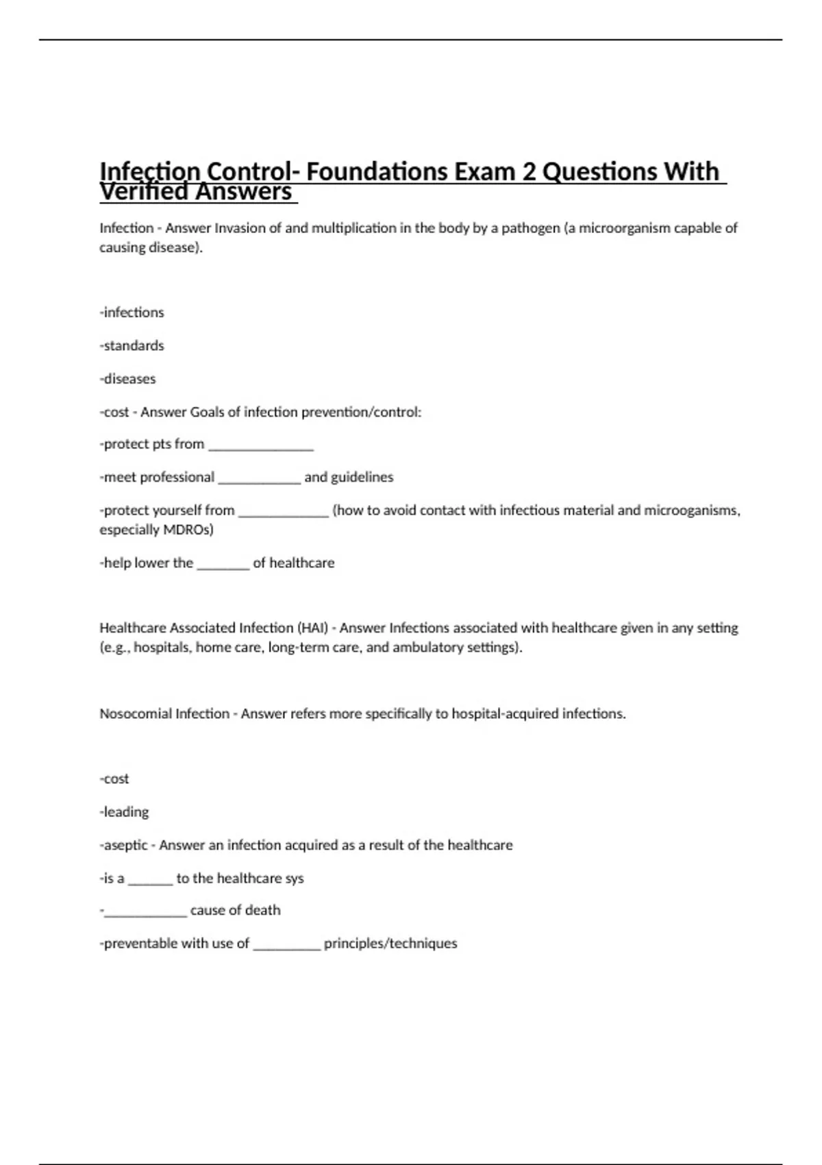 Infection Control- Foundations Exam 2 Questions With Verified Answers