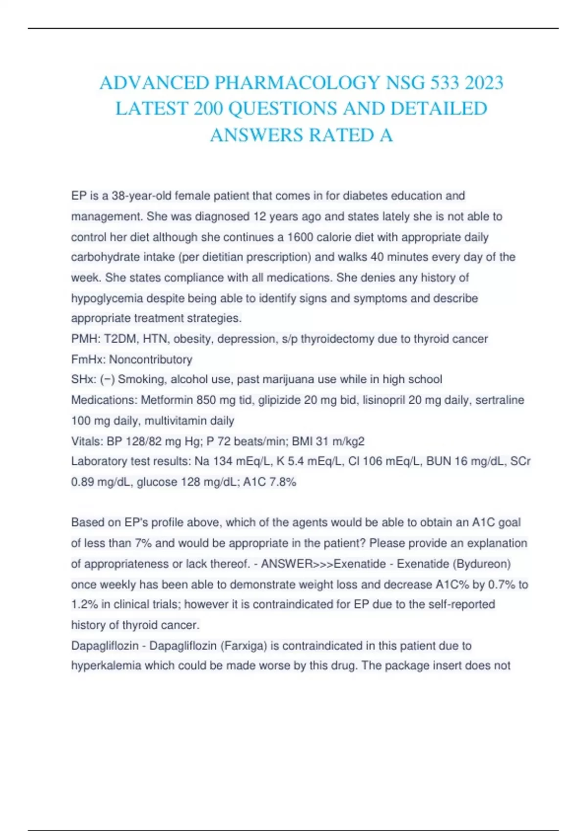 ADVANCED PHARMACOLOGY NSG 533 2023 LATEST 200 QUESTIONS AND DETAILED ANSWERS RATED