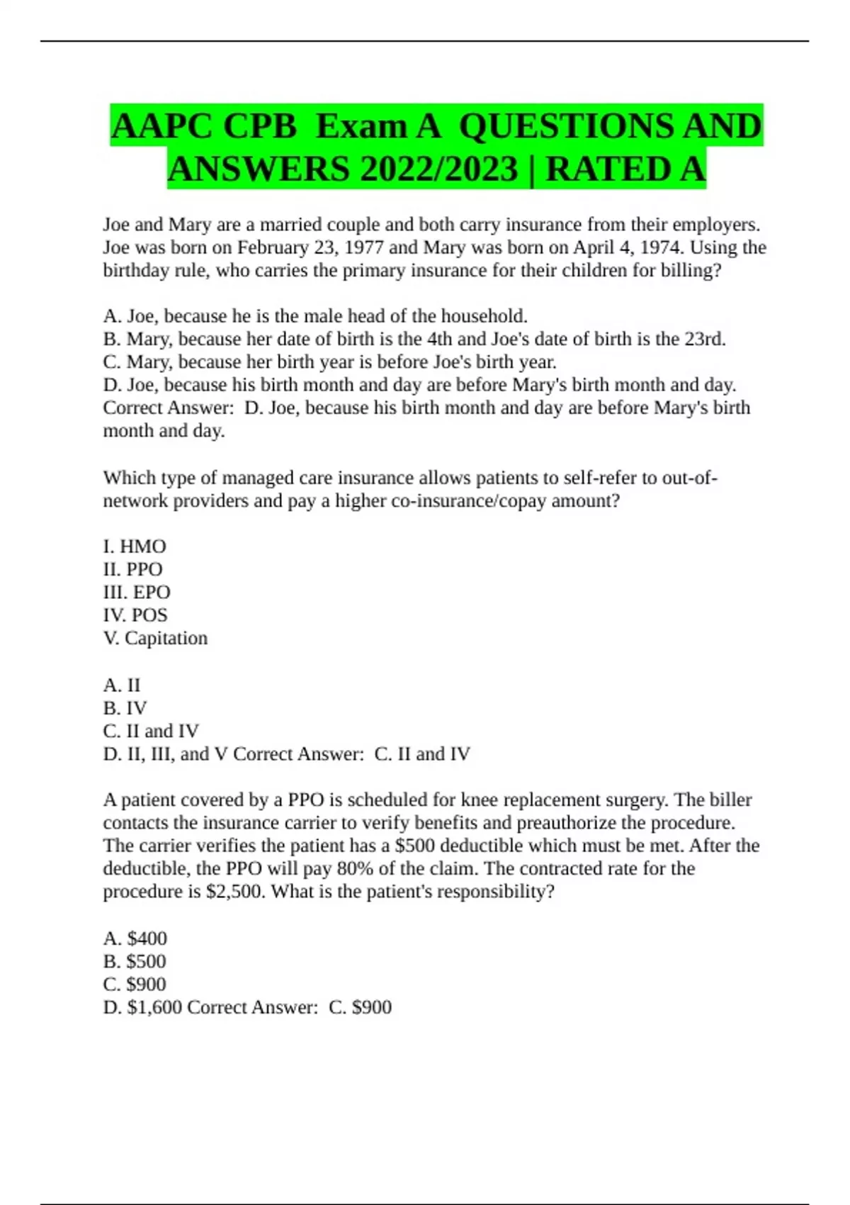 aapc cpb exam a questions and answers 2022