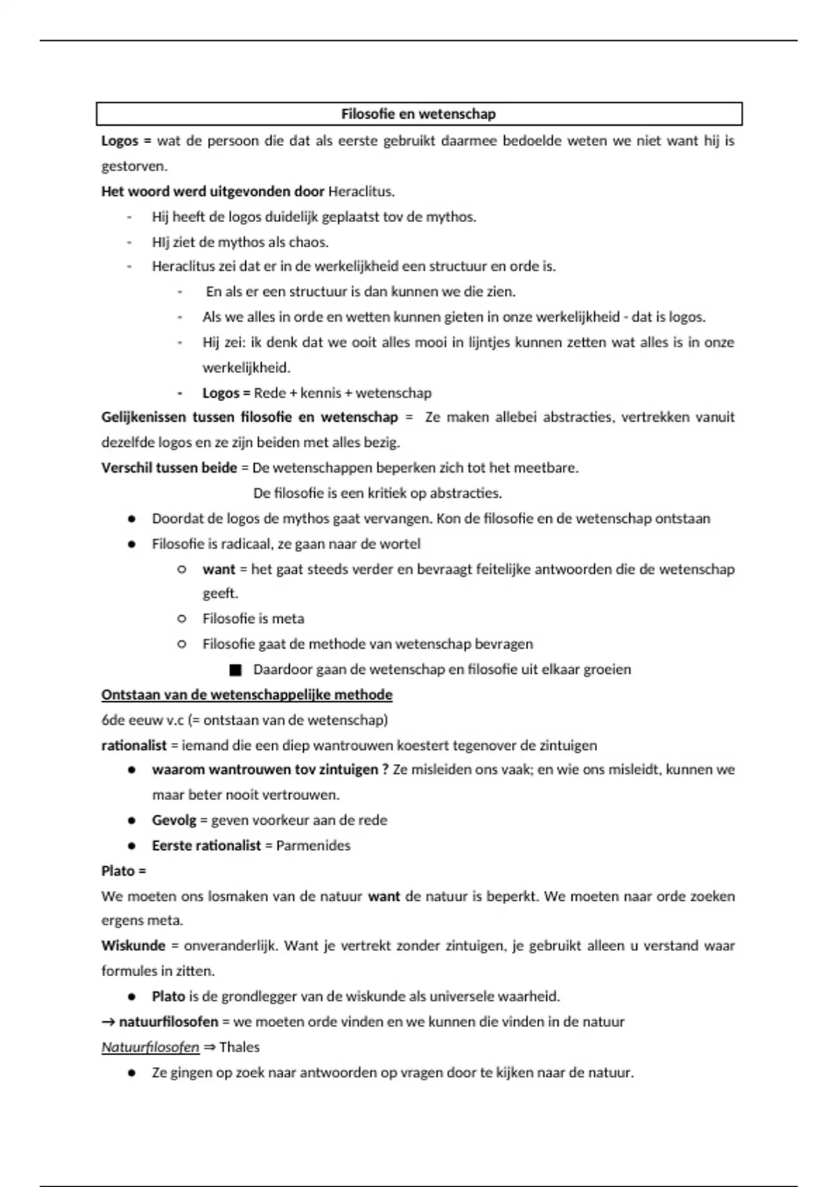 Gelijkenissen tussen filosofie en wetenschap = Ze maken allebei abstracties, vertrekken vanuit