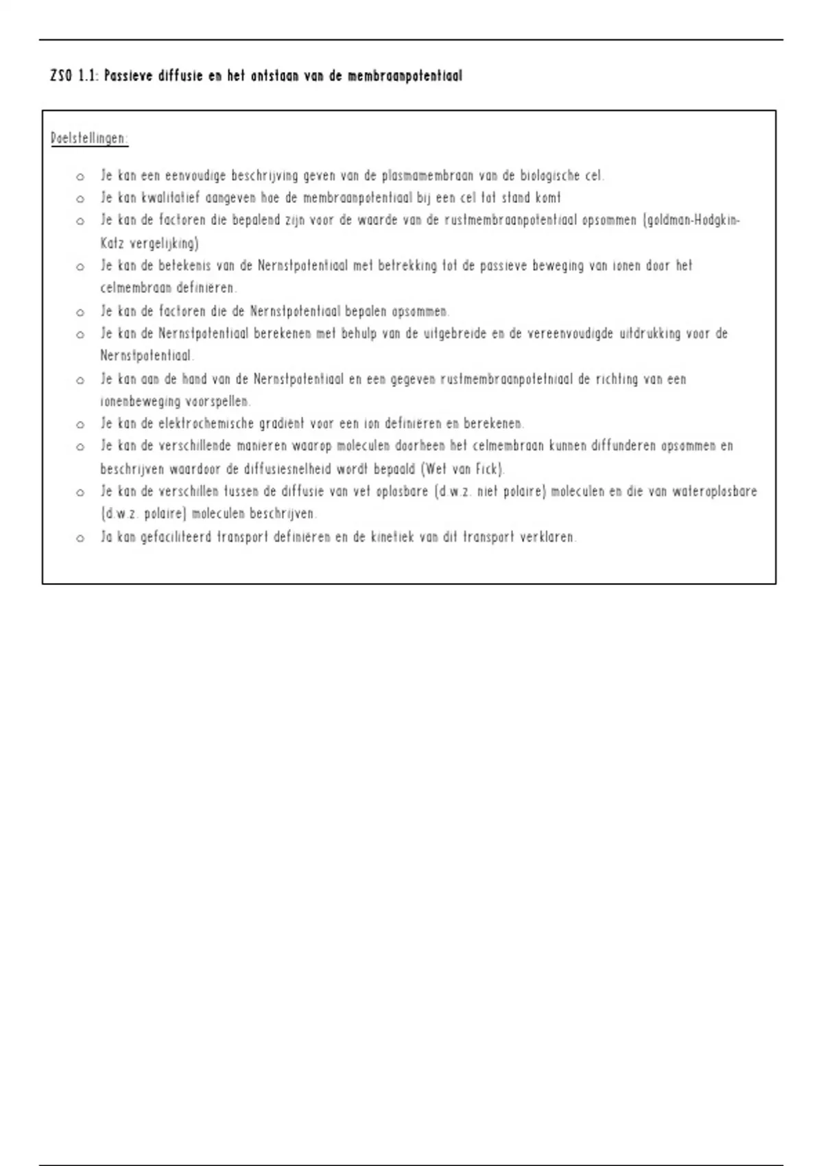 ZSO 1.1: Passieve diffusie en het ontstaan van de membraanpotentiaal