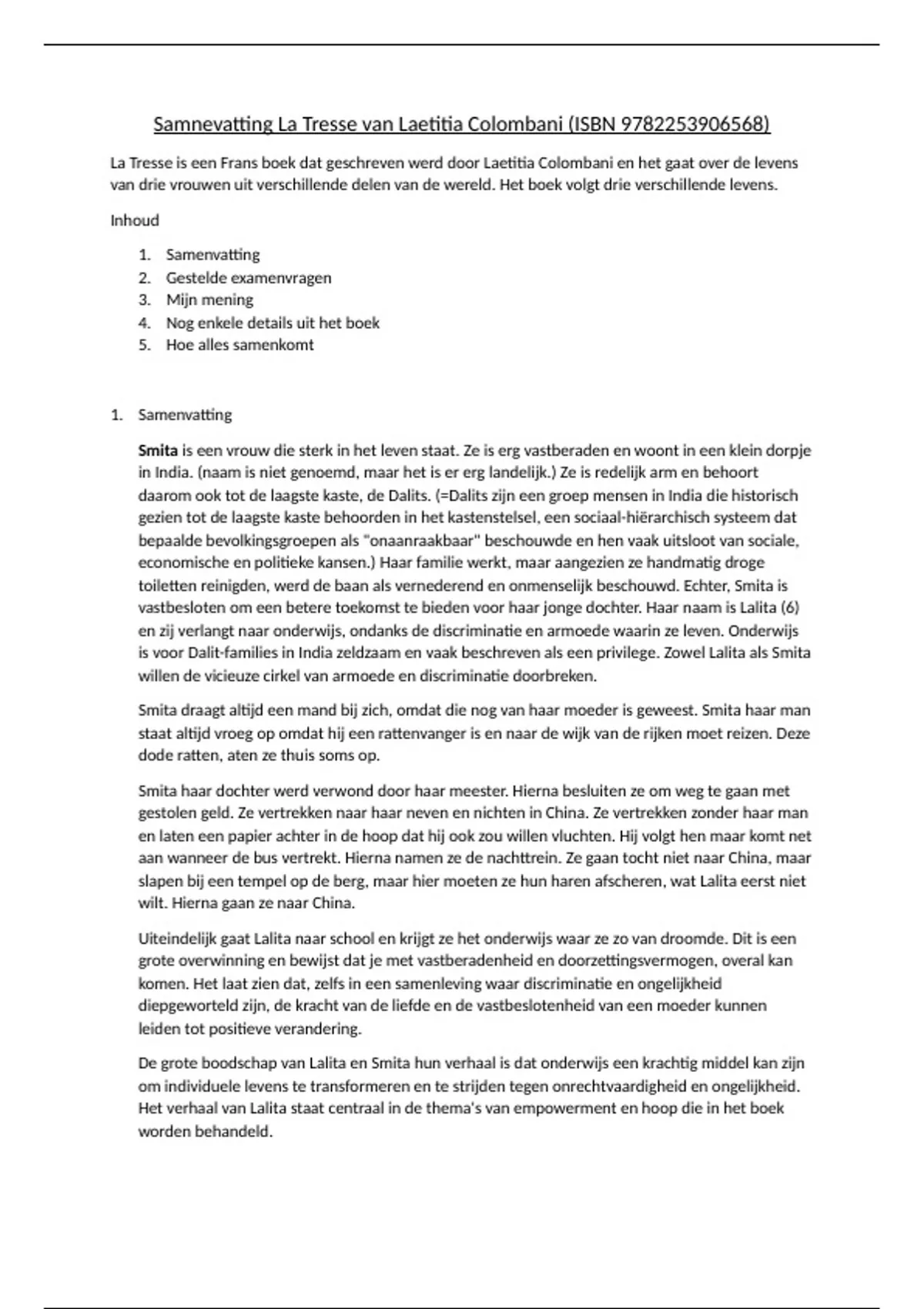 La Tresse is een Frans boek dat geschreven werd door Laetitia Colombani en het gaat over de levens