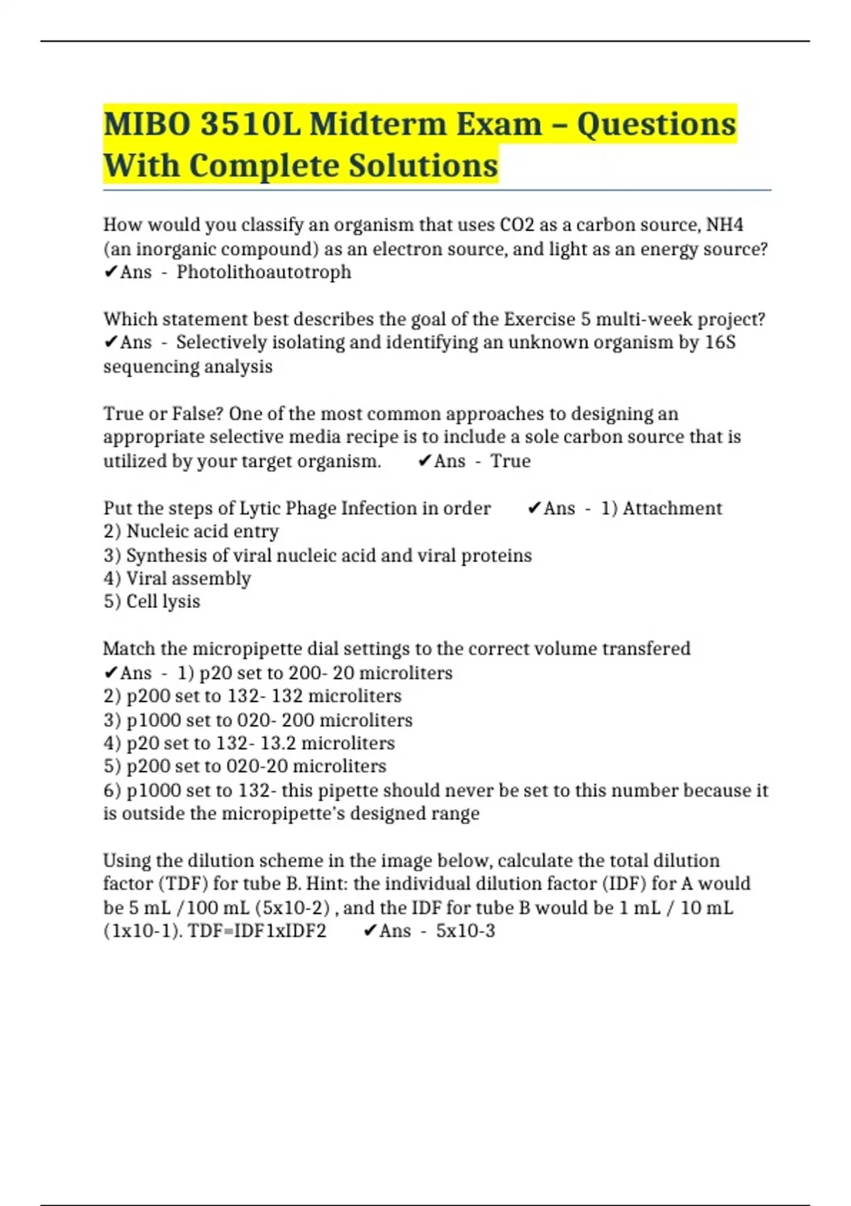 MIBO 3510L Midterm Exam – Questions With Complete Solutions