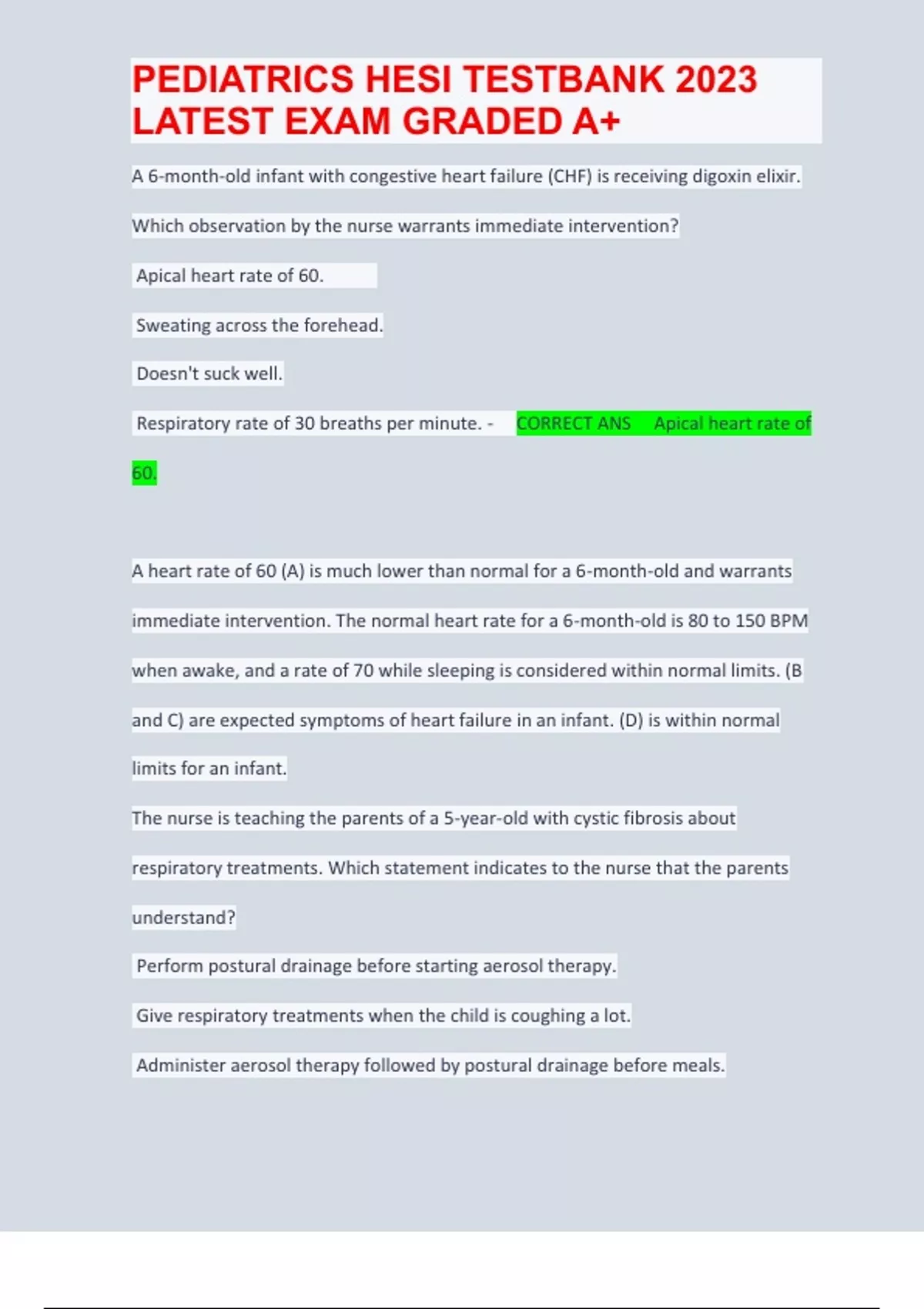 PEDIATRICS HESI TESTBANK 2023 LATEST EXAM GRADED A+